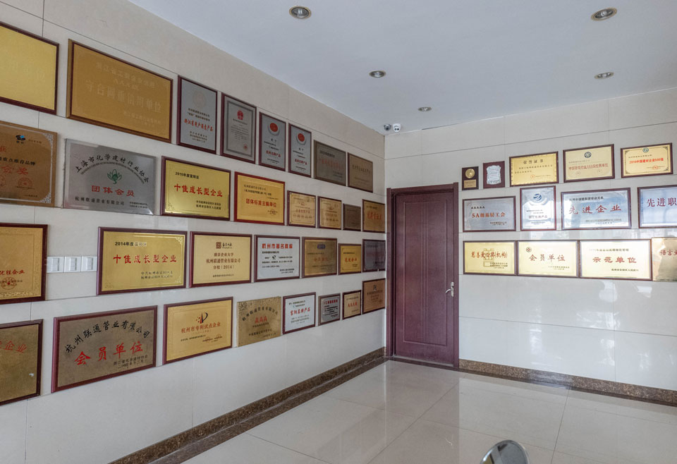 企业是国家重点高新技术企业、国家AAA守合同•重信用单位、国家级实验室认可(CNSA)企业、浙江省企业技术中心、浙江省中小企业技术中心、浙江省中小型科技企业、杭州市企业技术中心、杭州市专利试点企业、富阳区十佳成长型企业。是全国塑料制品标准化技术委员会塑料管材、管件及阀门分技术委员会通信委员单位。是行业标准《城市综合管廊通信用聚氯乙烯保护管》、《城市综合管廊电力用聚氯乙烯保护管》、《海绵城市专用聚乙烯实壁渗透管》和《海绵城市专用聚丙烯实壁渗透管》第一起草单位、是《聚乙烯缠绕结构壁管材》、《聚丙烯缠绕结构壁管材》、《塑料管道超声波壁厚测试》等国家标准的起草修订单位之一。目前正在申请和参与多项国家和行业标准的起草。