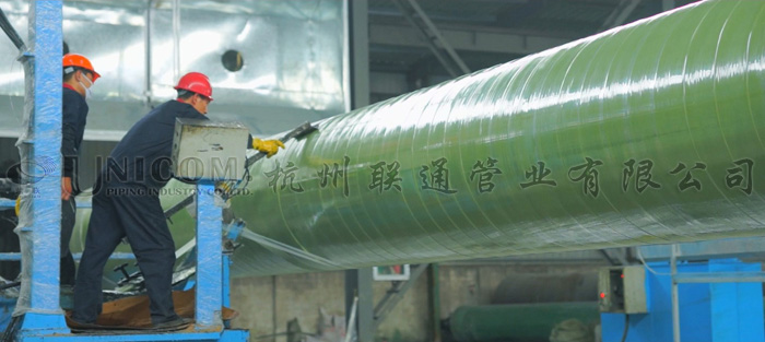 由计算机控制,在芯模上按规定的与纤维缠绕玻璃钢管相同的工艺制造内衬防水,凝胶后按设计好的线型和厚度缠绕结构层,并将石英砂与树脂混合的砂浆缠在结构层中,最后缠绕外保护层。